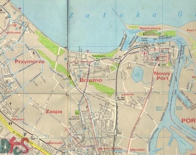Obecny deptak prowadzący od ul. Czarny Dwór do współczesnego mola nosił nazwę: ul. Plażowa. Prowadziła ona dalej poprzez obecną ul. Powstańców Wielkopolskich do ul. Chrobrego/Gdańskiej. Ulica Gdańska na tej mapie zaznaczona jest od skrzyżowania z ówczesną ulicą Plażową, a nie jak obecnie od skrzyżowania z ul. Hallera. Inne jest położenie ul. Grudziądzkiej, która później została przesunięta na południe, gdyż na jej miejscu i okolicznym terenie powstała zajezdnia autobusowa.